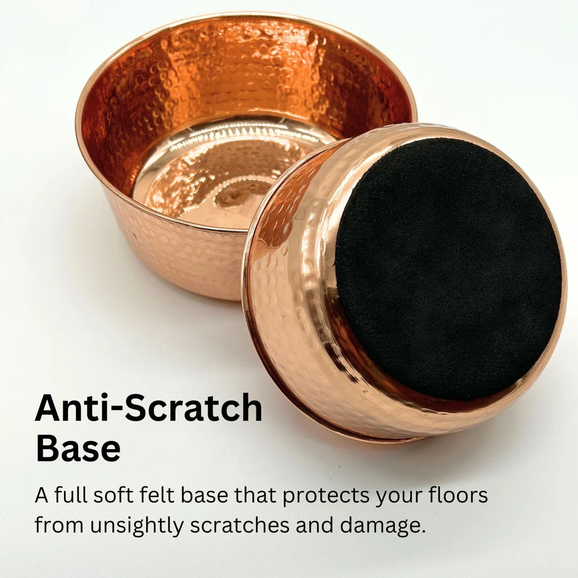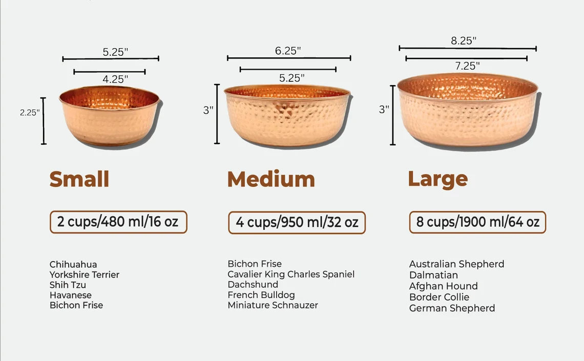 Our premium pure copper pet water bowls are handcrafted from 100% pure copper, never lined or coated on the inside to ensure that your furry friend gets the full benefits of the copper-infused water. Its durable construction guarantees longevity, providing a reliable and stylish addition to your pet's feeding routine. Elevate your furry friend's drinking experience with this exceptional copper bowl, a testament to our commitment to their health and well-being.