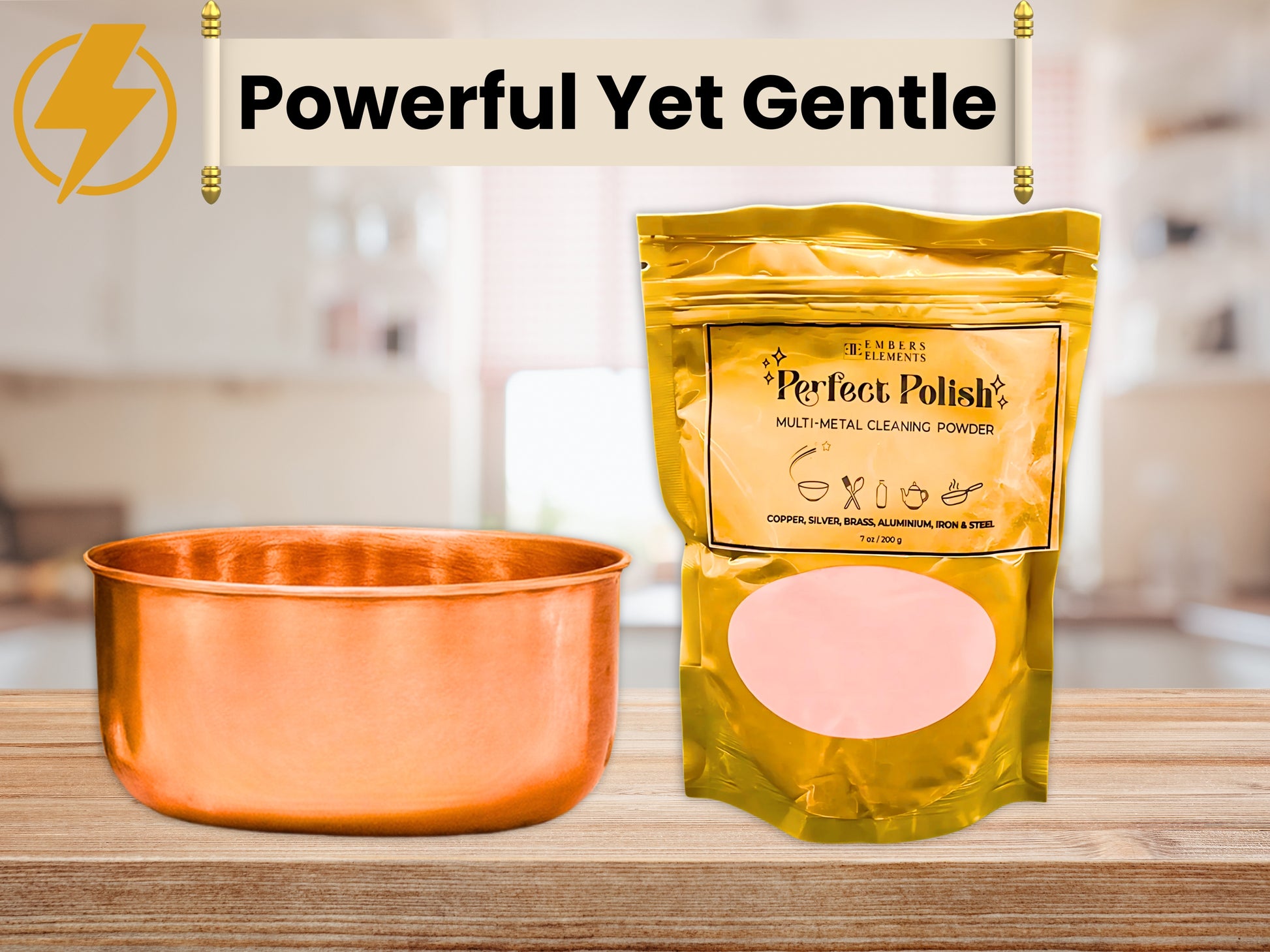 Perfect Polish is your trusted partner in preserving the beauty of your copperware — especially bowls used by your furry friends — and other cherished metal items. Just a sprinkle revives the shine, naturally and safely.